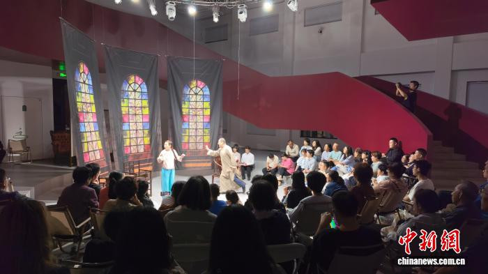 10月3日,曹禺先生经典话剧片段在天美艺术街区上演。中新社记者 孙玲玲 摄
